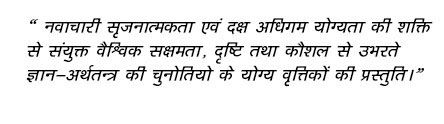 "To produce such professionals who have global competence, vision, and skills as are necessary to meet the challenges of emerging global knowledge economy, by the power of innovation, creativity and efficient learning ability."